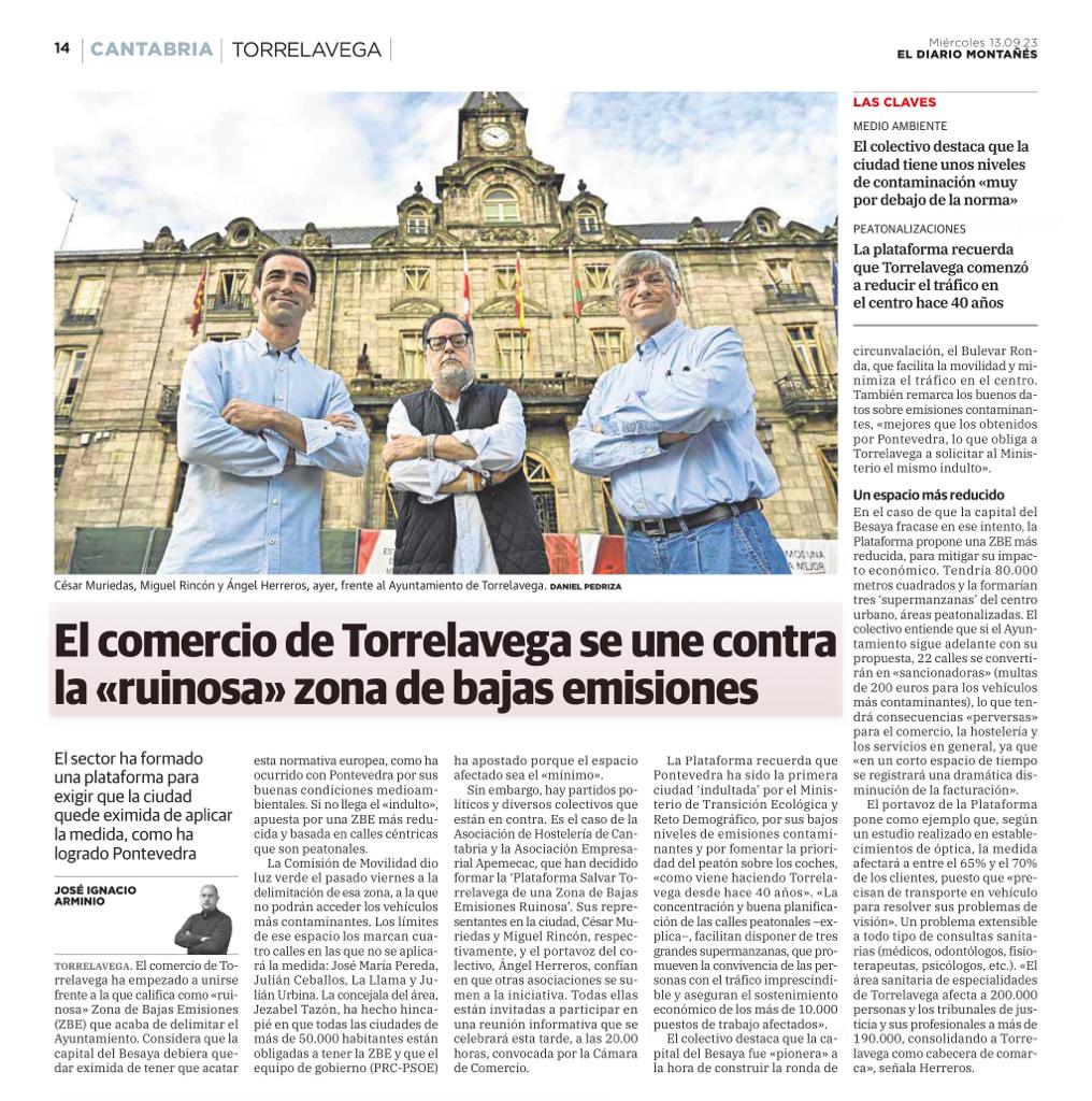 El Diario Montañés se hace eco, en este amplio reportaje, de lo que supondría la instalación de la Zona de Bajas Emisiones en Torrelavega y recoge muy bien las propuestas que como plataforma estamos solicitando.