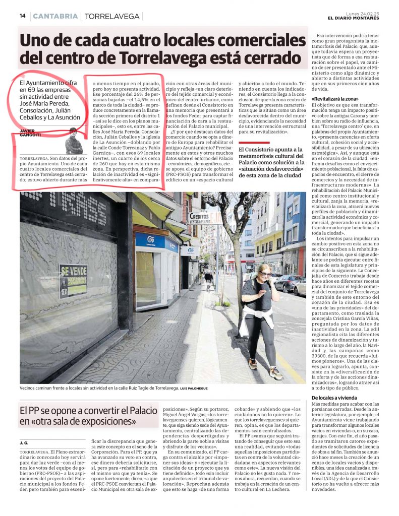 Uno de cada cuatro locales comerciales del centro de Torrelavega está cerrado: ¿de verdad, Alcalde, sigues pensando que estamos en el mejor momento de los últimos 50 años?